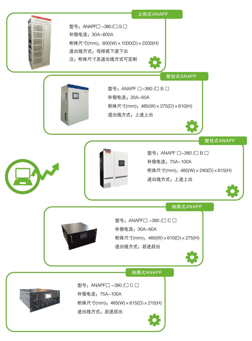 適用于并聯(lián)在含諧波負載的低壓配電系統(tǒng)中,能夠對動態(tài)變化的諧波電流進行快速實時的跟蹤和補償。訂貨范例: