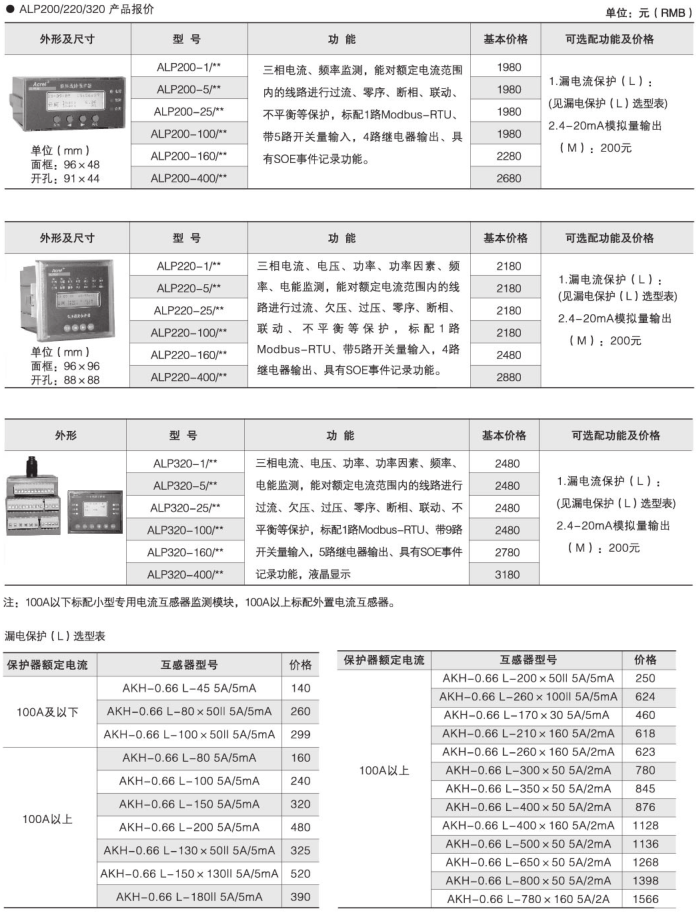 ALP系列低壓保護器集保護、測量、控制、總線通訊為一體,同時提供了遠程自動控制、現場直接控制、面板指示、信號報警、操作記錄、跳閘報警記錄及開關量記錄等功能。應用范圍: