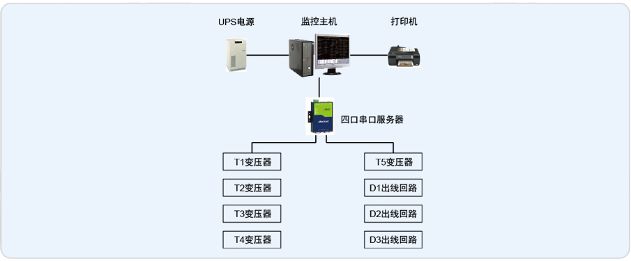 本項(xiàng)目為武漢愛機(jī)汽車配件有限公司變電所改造項(xiàng)目。根據(jù)配電系統(tǒng)管理的要求,需要對(duì)武漢愛機(jī)汽車配件有限公司3個(gè)變電所內(nèi)的8個(gè)低壓配出線進(jìn)行電力監(jiān)控,以保證用電回路的安全、可靠和高效的運(yùn)行。監(jiān)測(cè)范圍具體為T1、T2、T3、T4、T5、D1、D2和D3共8個(gè)變壓器的進(jìn)線柜側(cè)儀表進(jìn)行遠(yuǎn)程實(shí)時(shí)監(jiān)控和電能管理。該系統(tǒng)總計(jì)有8只儀表,分2條總線,都是直接通過屏蔽雙絞線走管道拉至值班室連接到串口服務(wù)器上,實(shí)現(xiàn)總線上儀表與監(jiān)控主機(jī)的數(shù)據(jù)連通。