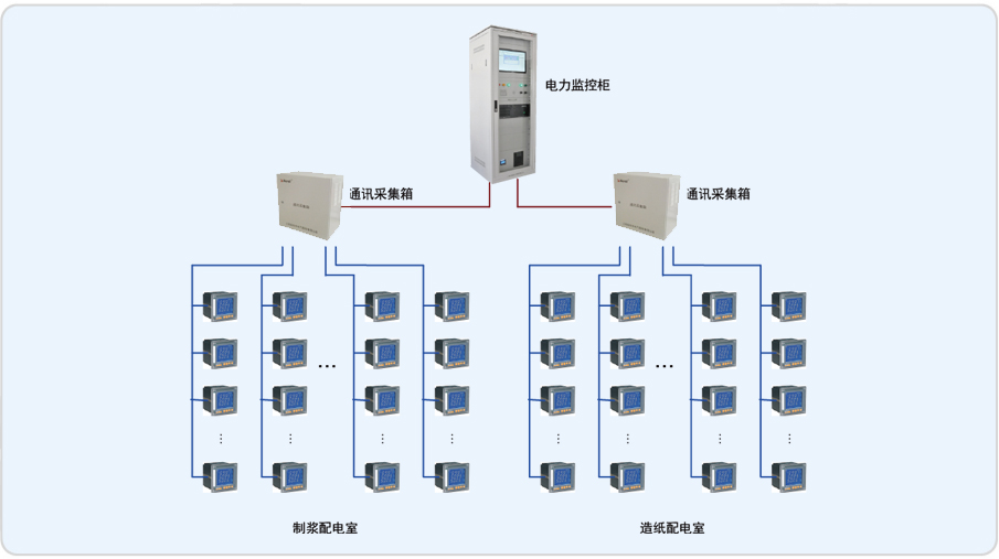 淄博歐木特種紙業(yè)有限公司是山東齊峰特種紙業(yè)股份有限公司的全資子公司。2003年企業(yè)被國家科技部命名為國家新材料產(chǎn)業(yè)化基地骨干企業(yè),2004 年進(jìn)入全國私營企業(yè)納稅百強(qiáng)排行榜,公司擁有山東省企業(yè)技術(shù)開發(fā)中心、山東省高檔裝飾原紙工程技術(shù)中心和院士工作站,由中國造紙?jiān)菏筷惪藦?fù)教授擔(dān)任專家。歐木特種紙業(yè)二期電能管理系統(tǒng)現(xiàn)場為新建的15#車間,2個(gè)低壓配電室:制漿配電室和造紙配電室,配電室內(nèi)采用安科瑞ACR系列電能管理儀表采集各回路的電流、電壓、電能等電參量,然后通過中間層采集設(shè)備經(jīng)局域網(wǎng)傳到監(jiān)控室計(jì)算機(jī)上,實(shí)現(xiàn)遙測、遙信功能。