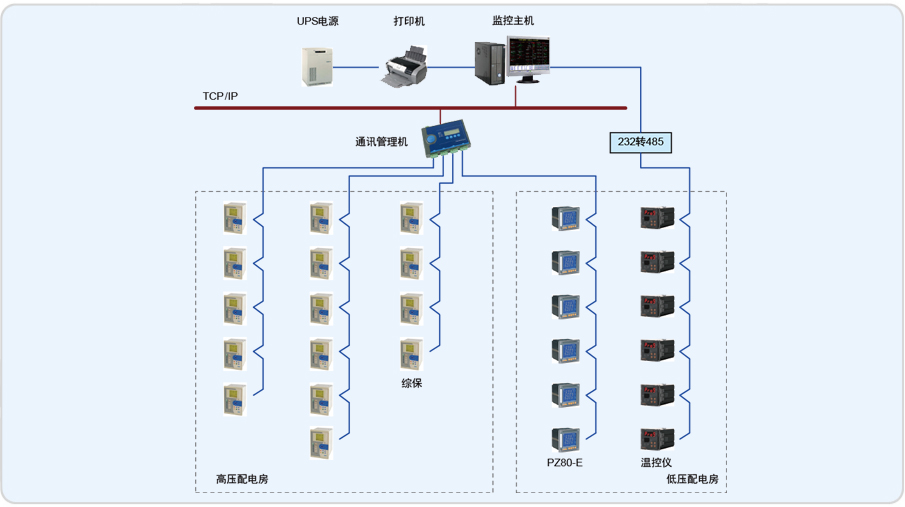 該項(xiàng)目是一個(gè)新建廠區(qū)的配電系統(tǒng),包含35KV變壓器2臺,10KV變壓器3 臺,項(xiàng)目中監(jiān)控范圍為35KV線路微機(jī)保護(hù)裝置2臺,變壓器溫控儀8臺,10KV微機(jī)保護(hù)裝置12臺,安科瑞智能儀表8臺,本套系統(tǒng)主要強(qiáng)調(diào)實(shí)時(shí)數(shù)據(jù)的監(jiān)測、控制,主要針對整個(gè)配電系統(tǒng)可靠性進(jìn)行全程的智能化監(jiān)控,數(shù)據(jù)分析,投、斷,以及對各回路所用電能進(jìn)行統(tǒng)計(jì)。