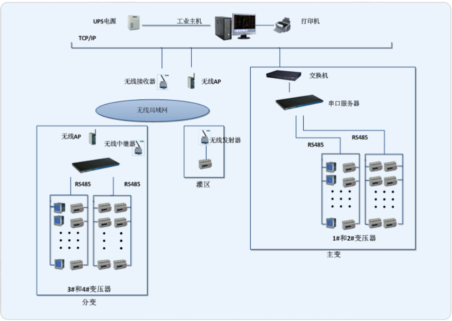 由于廠區大部分為防爆區,不允許大規模施工,所以灌裝區、分變和主變之間均采用無線AP通信。