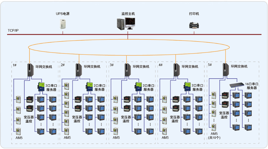 萬通中心配電系統通過多功能的電力監控裝置、通訊網絡和計算機軟件,實現建筑供配電系統在運行過程中的數據采集、運行監視、事故預警、事故記錄和分析、電能質量檢測、三相不平衡監視、繼電保護等,完成建筑的安全供電、用電管理、設備管理和運行管理。整個監控系統由主控層、通訊管理層和現場控制層構成,系統要求盡量減少集中采集數據的裝置以保證系統的通訊可靠性。