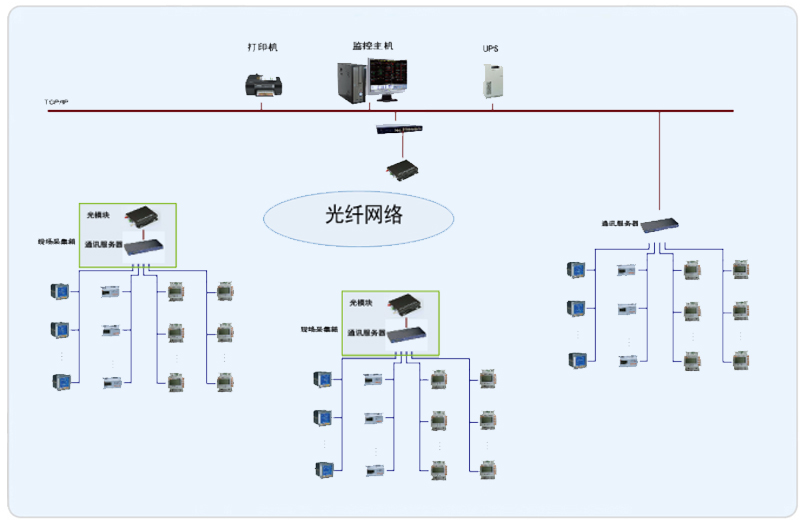 系統(tǒng)采用Acrel-3000型電能管理系統(tǒng),整個(gè)系統(tǒng)采用網(wǎng)絡(luò)分布式結(jié)構(gòu),監(jiān)控主機(jī)位于主樓監(jiān)控中心,其他兩棟輔樓采用采集箱進(jìn)行數(shù)據(jù)的采集,所有配電回路均配備安科瑞電力儀表PZ系列、DTSY1352和DDSY1352系列。該項(xiàng)目實(shí)現(xiàn)了歐蓓沙中華美食城的配電管理及。所有監(jiān)控設(shè)備均通過(guò)屏蔽雙絞線至各自采集箱的通訊采集器,再通過(guò)光電轉(zhuǎn)換器經(jīng)過(guò)光纖將數(shù)據(jù)傳輸至監(jiān)控中心,從而實(shí)現(xiàn)遠(yuǎn)程監(jiān)控和預(yù)付費(fèi)管理。